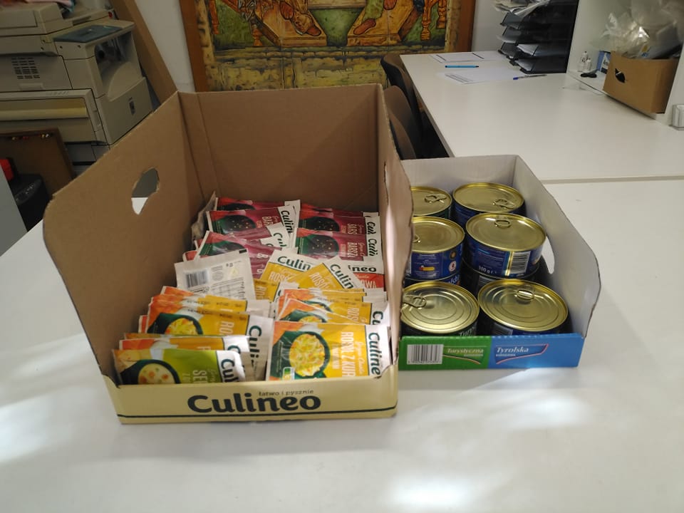 Dziękujemy anonimowemu Darczyńcy za dostarczenie produktów spożywczych. Otrzymaliśmy zupki typu gorący kubek oraz konserwy.