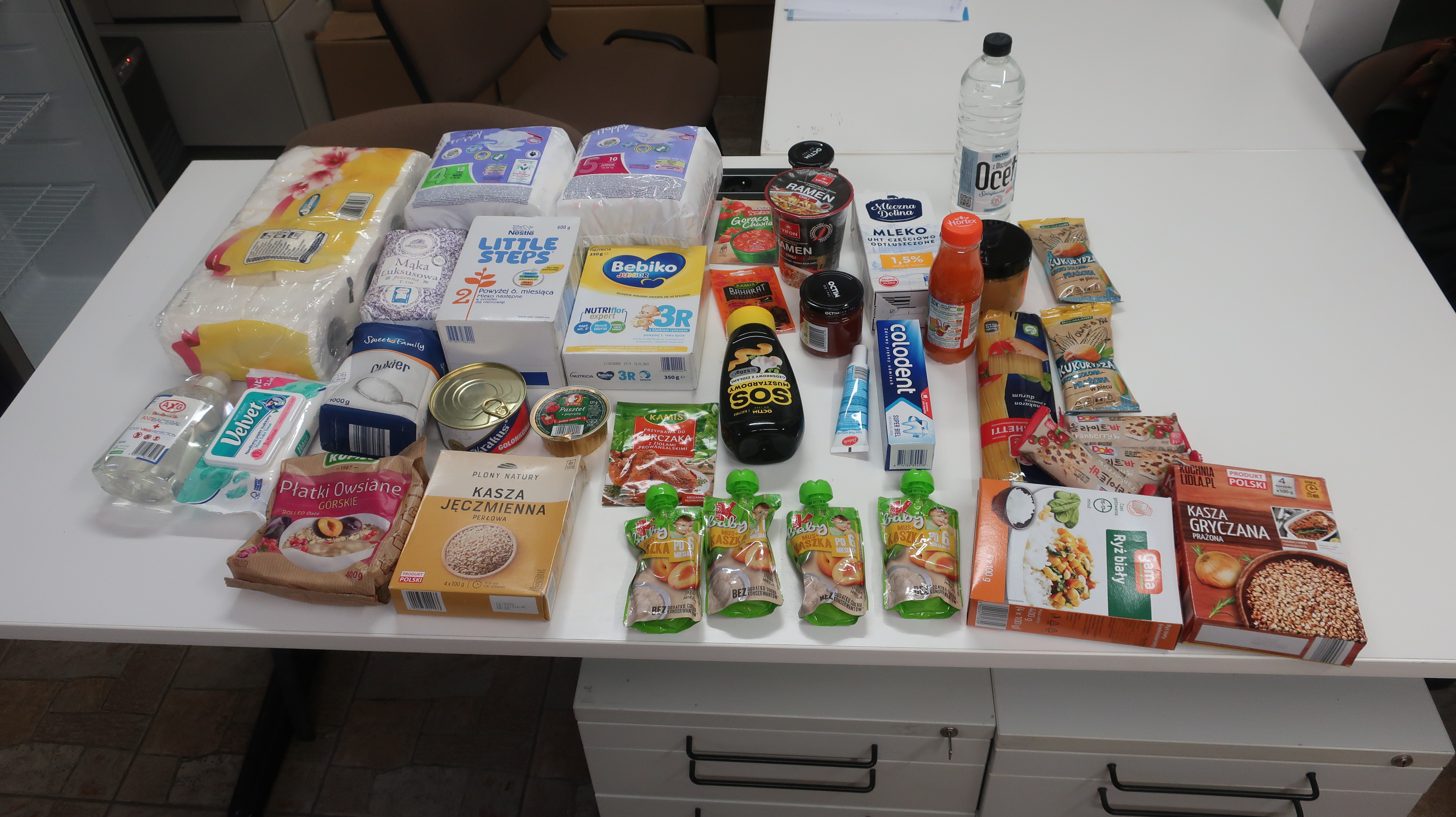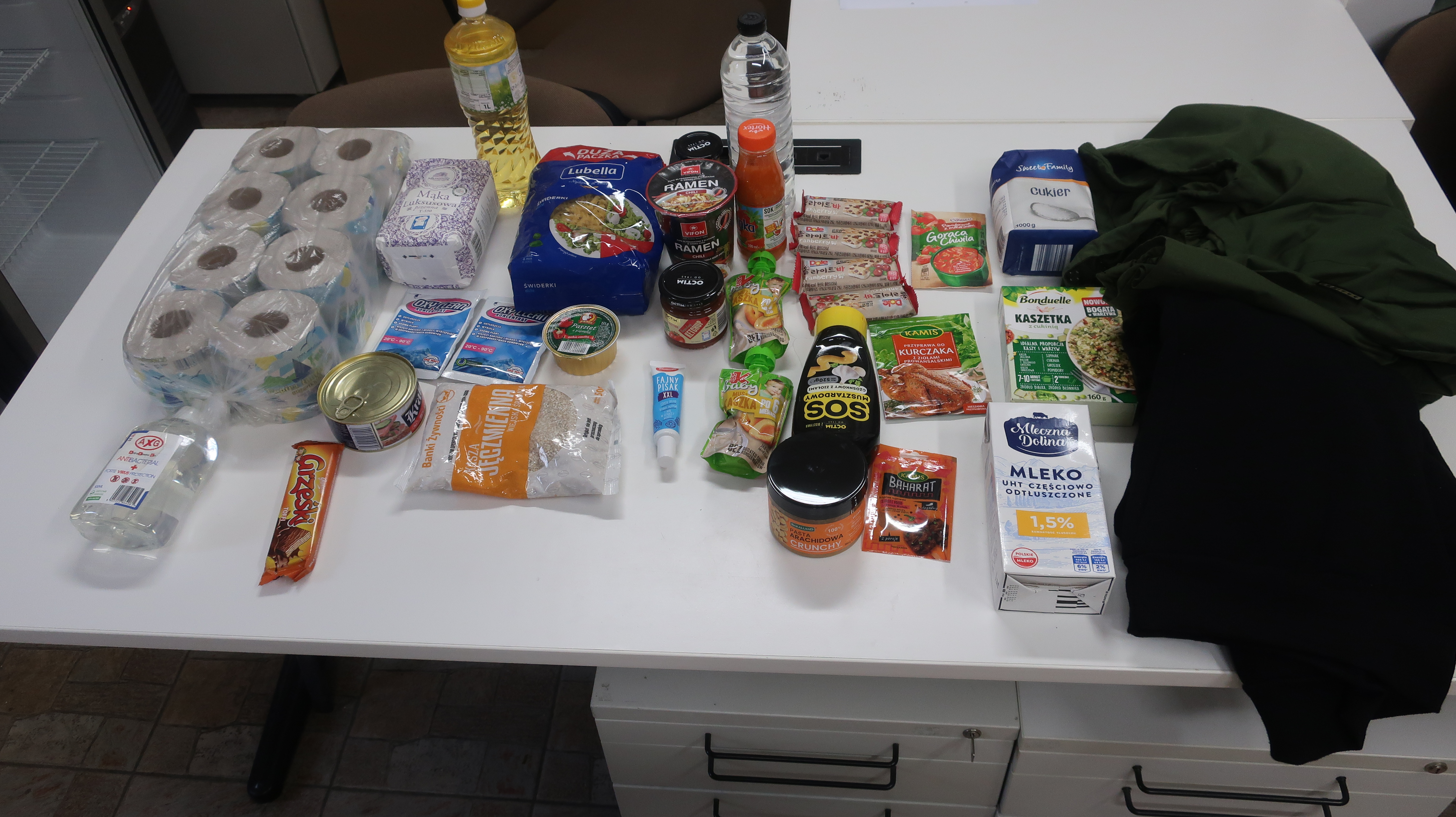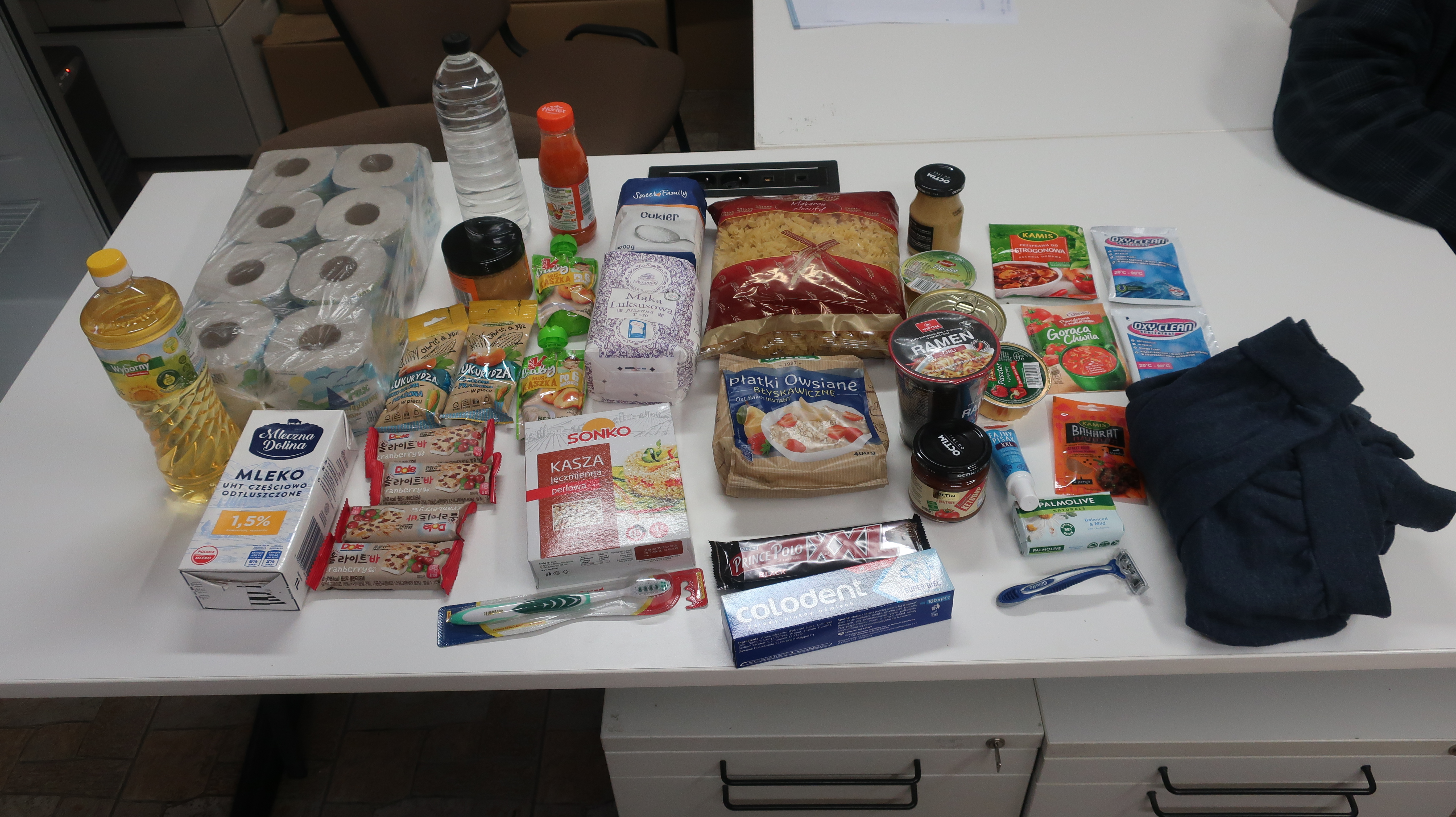 Polak Polakowi Bratem❗️W Punkcie Przyjęć Potrzebujących nasz Wolontariusz kol. Mariusz przyjął naszych Podopiecznych p. Monikę, matkę samotnie wychowującą trójkę dzieci, wynajmuje mieszkanie za 2030 zł, utrzymuje się z alimentów i 500 plus x2, ale także otrzymuje świadczenie chorobowe poza opłatami i zwykłym życiem z tych środków pokrywa dług za stancję, p. Barbarę, mieszka w garażu, utrzymuję się ze sprzedaży na rynku używanych szpargałów, zarabia msc z 600 zł, p. Dariusza, bezdomnego mieszkające na altance działkowej, utrzymuję się z prac dorywczych, na których zarabia kilkaset złotych msc, p. Mirosława, utrzymującego się z emerytury 670 zł, wynajmuję pokój za 600 zł, ma syna ale nie ma żadnego kontaktu, p. Arkadiusza, zamieszkującego przyczepę kampingową, bezdomny od wielu lat, bez dochodu, p. Bogumiła z córką Kamilą, jest ojcem samotnie wychowującym dziecko, utrzymuję się z 500 plus, rodzinnych, w tej chwili pracuje także przy pracach interwencyjnych skierowanych przez MOPS, p. Zenona, utrzymującego się z emerytury 1120 zł, opłaty, leki i alimenty pochłaniają całość świadczenia, p. Tomasza, do tej pory osobę bezdomną, od tygodnia zatrudniony na budowie dzięki naszemu pośrednictwu w pozyskaniu pracy, wstaje na nogi, w tej chwili zamieszkuje u osoby, która daje mu dach aż do usamodzielnienia. Otrzymali żywność, środki czystości, higieny osobistej, ubrania i inne akcesoria. Dziękujemy naszym anonimowym Donatorom oraz Arrachion Olsztyn Bank Żywności w Olsztynie Radziemska Wyrób Artykułów Chemii Gospodarczej OCTIM – od 1965 za okazane wsparcie.