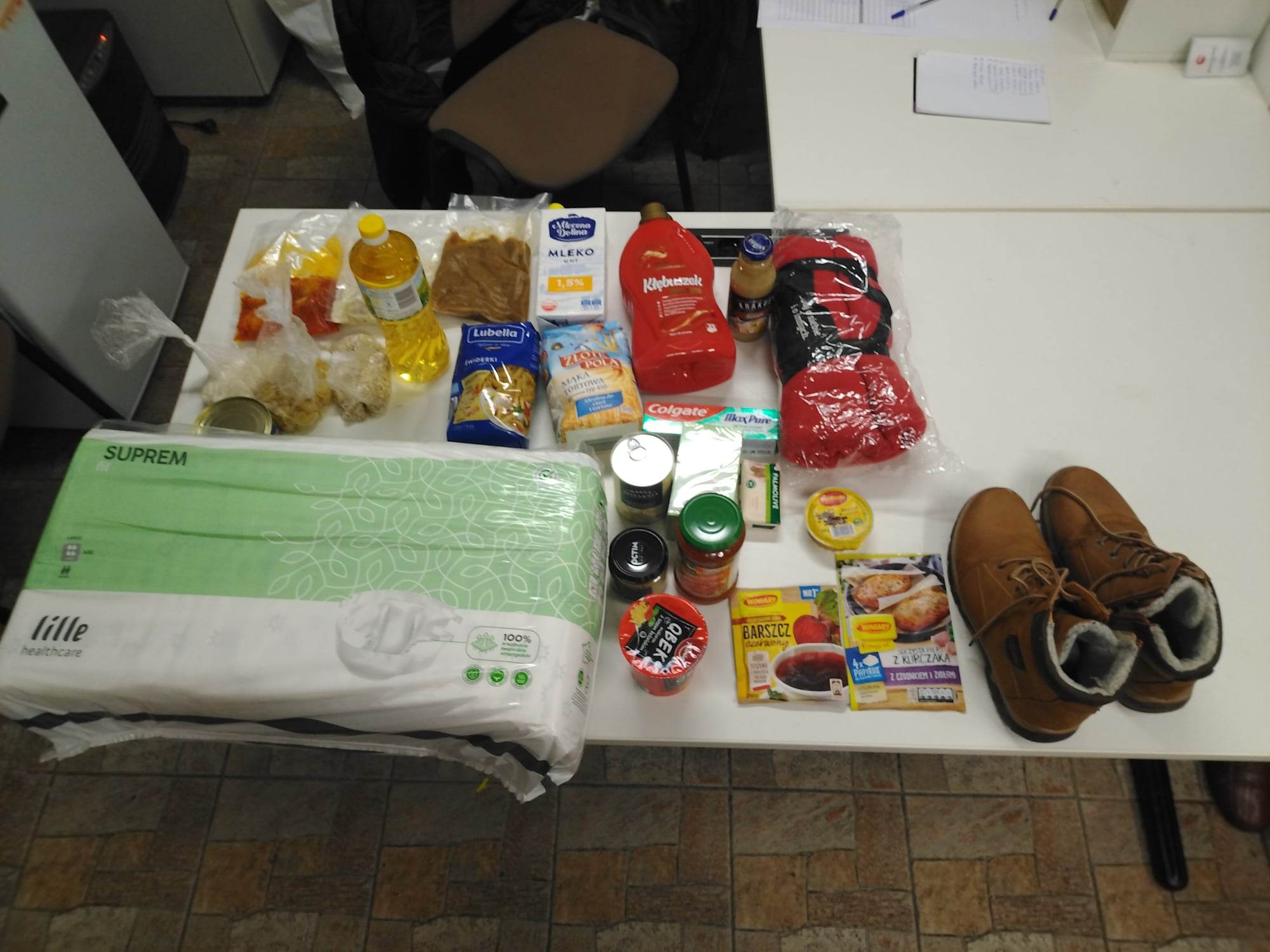 Polak Polakowi Bratem❗W Punkcie Przyjęć Potrzebujących nasi Wolontariusze kol. Marcin i kol. Mariusz przyjęli nową Podopieczną p. Bronisławę lat 70, utrzymującej się z zasiłku stałego 719 zł, 384 zł czynsz, prąd 279 zł, leki 150 zł, nie ma dzieci, staż pracy 24 lata jako pracownik biurowy, choruje na cukrzyce i przepuklinę. Otrzymała żywność oraz inne akcesoria.