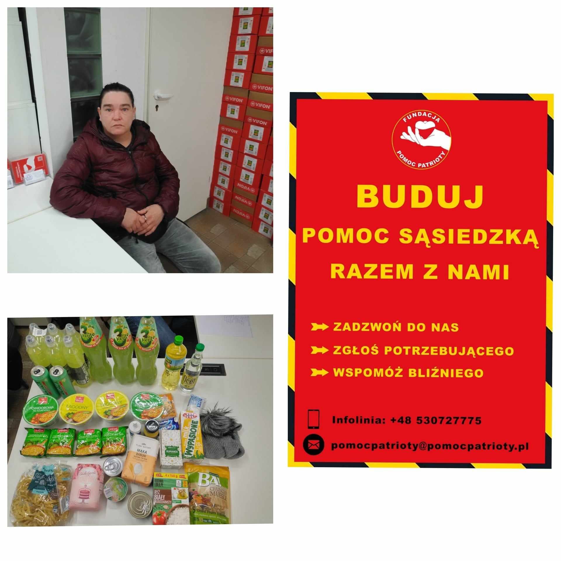Polak Polakowi Bratem❗W Punkcie Przyjęć Potrzebujących nasi Wolontariusze kol. Marcin, kol. Szymon i kol. Mariusz przyjęli nową Podopieczną p. Małgorzatę lat 44, utrzymuje się z prac dorywczych około 300 zł miesięcznie, od 2 lat bezrobotna, mieszka w mieszkania za który czynsz wynosi 480 zł, nie płaci go od 5 lat, nie ma prądu i gazu, został wyłączony, leki 150 zł, tel 10 zł, nie ma dzieci, cała ta sytuacja wynikła po śmierci męża, załamała się i trwa to już od 3 lat, na szczęście otrzymuję wsparcie od mamy, problemy z podjęciem pracy wynikają także z tego że odrabia godziny, ma ich jeszcze 180. Otrzymała żywność i inne akcesoria pierwszej potrzeby. Dziękujemy za Wparcie anonimowym Darczyńcom oraz Hurtowni Spożywczej BO-DO, Producentowi Słodyczy Warnija Praca w Michelin OCTIM – od 1965 Bank Żywności w Olsztynie Arrachion Olsztyn Kaiser Sports Linmot PL Reklama Olsztyn – PR Biznes Fundacja Biedronki