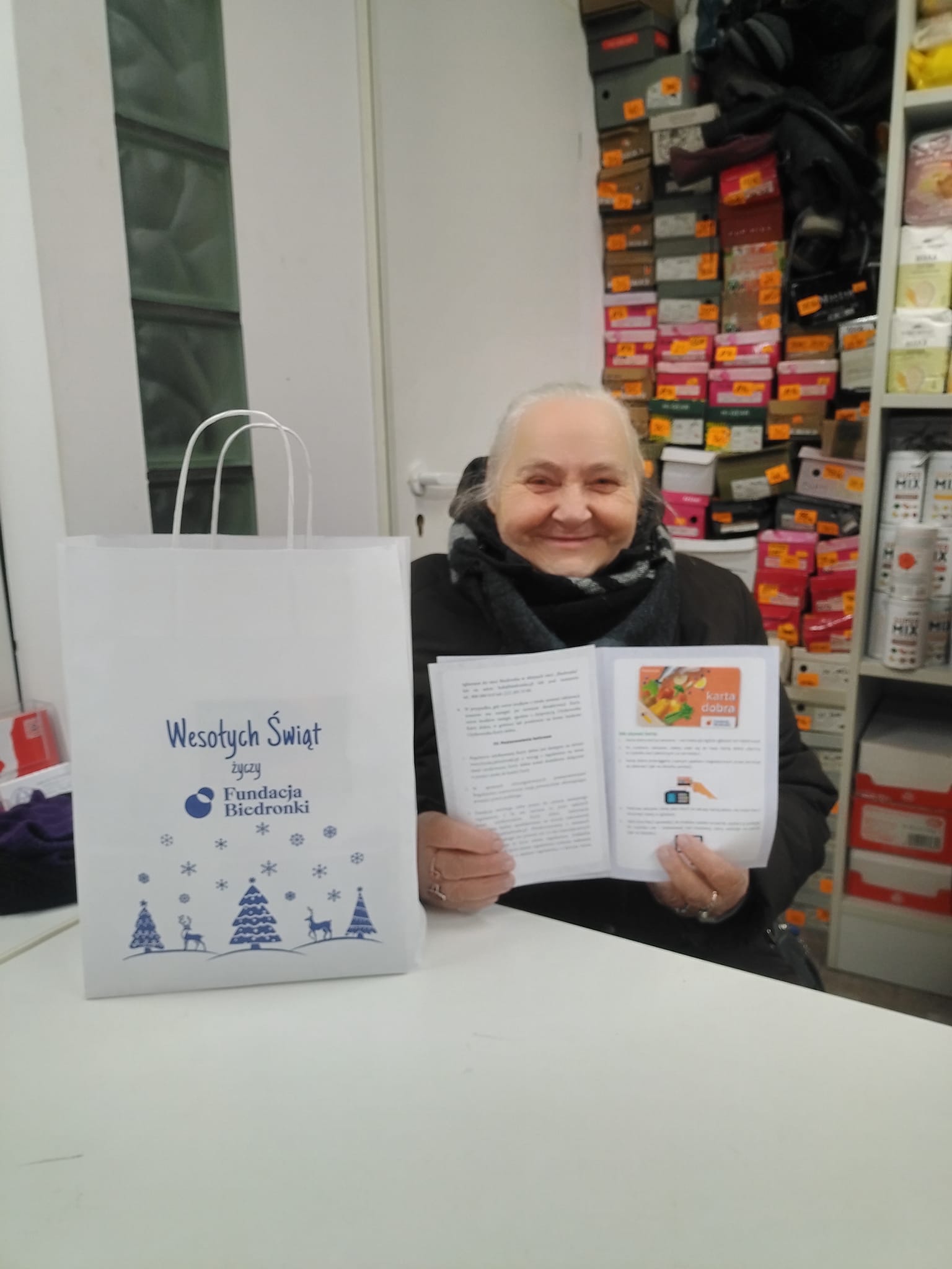 Polak Polakowi Bratem❗W Punkcie Przyjęć Potrzebujących nasi Wolontariusze kol. Beata, kol. Angelika, kol. Jeremi i kol. Mariusz przyjęli nową Podopieczną p. Marię lat 68, utrzyma się z emerytury 1400 zł, za czynsz płaci 100 zł, prąd 70 zł, gaz 100 zł, tel 35 zł, leki 200 zł, ma 5 dzieci, które pomagają ale nie jest to wymiar stały pomocy, staż pracy to 35 lat jako kelner i barman, a także jako opiekunka 🤝Nasza Fundacja kontynuuje dystrybucję Kart Dobra, które otrzymaliśmy od Fundacja Biedronki ❗️Jako kluczowi pośrednicy pomocy podjęliśmy się współpracy by czynić jeszcze więcej dobra dla ubogich Rodaków 👍Program wsparcia jest skierowany szczególnie do osób6️⃣0️⃣➕👇Mamy do przekazania8️⃣0️⃣kart. Na każdej miesięcznie będzie1️⃣8️⃣5️⃣zł do wykorzystania w sieci sklepów Biedronka tylko na zakupy artykułów pierwszej potrzeby. Każdy obdarowany Kartą Dobra otrzyma wsparcie aż na1️⃣0️⃣miesięcy👉Podczas dyżuru w Punkcie Przyjęć Potrzebujących, przekazaliśmy kolejną1️⃣kartę dla nowej Podopiecznej, a także mały prezent świąteczny z artykułami pierwszej potrzeby. Już w najbliższym czasie kolejne działania w tym zakresie.