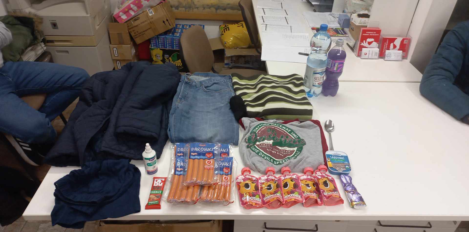Polak Polakowi Bratem❗W Punkcie Przyjęć Potrzebujących nasi Wolontariusze kol. Marcin, kol. Beata, kol. Mateusz, kol. Łukasz i kol. Mariusz przyjęli nowego Podopiecznego p. Sylwestra lat 41, bezdomny od marca 2023 roku, wyszedł z więzienia i od tamtej pory na ulicy, nie ma dzieci, bezrobotny i bez dochodu, śpi na klatkach schodowych, za sobą ma 10 letni staż pracy jako tokarz i pracownik fizyczny. Otrzymał żywność oraz inne akcesoria. Dziękujemy za Wparcie anonimowym Donatorom oraz Hurtowni Spożywczej BO-DO, Producentowi Słodyczy Warnija Praca w Michelin OCTIM – od 1965 Bank Żywności w Olsztynie Arrachion Olsztyn Kaiser Sports Linmot PL Reklama Olsztyn – PR Biznes Fundacja Biedronki