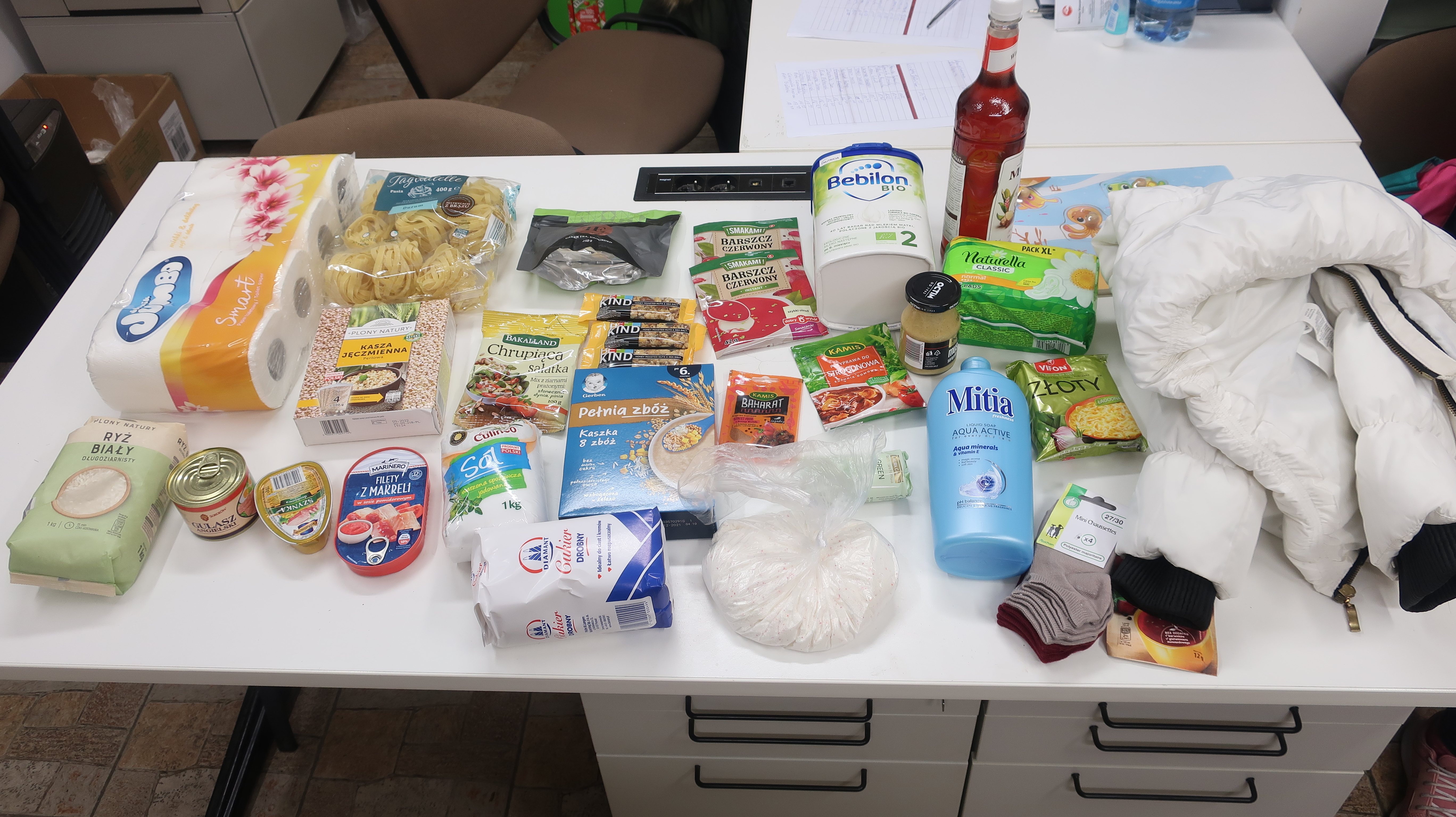 Polak Polakowi Bratem❗️W Punkcie Przyjęć Potrzebujących nasi Wolontariusze kol. Marcin i kol. Mariusz przyjęli naszych Podopiecznych p. Stanisława utrzymującego się z 1000 zł emerytury, wynajmującego pokój za 500 zł, jest bezdzietnym kawalerem, p. Wiesława utrzymującego się z wypłaty, zatrudniony jest jako sprzątacz 1500 zł, płaci alimenty 350 zł, mieszka w altance działkowej, jest bezdomnym, p. Marcina utrzymującego się z zasiłku okresowego 350 zł, ma poważne problemy z chodzeniem, ma wyciętą kostkę, miał 6 operacji i posiada 8 śrub w nodze, p. Wiolettę, mieszkającą na działce ogrodniczej, w czwartek ma rozmowę o pracę dzięki naszej interwencji, p. Justynę samotnie wychowującą córkę 2, 5 roku, utrzymującą się jedynie z alimentów, mieszka u koleżanki, walczy przed sądem o alimenty, p. Kamilę, utrzymującą się z zasiłku stałego 719 zł, nie może pracować ponieważ każdy orzecznik pracy jej odmawia, koszt utrzymania media i czynsz przewyższają przychody, sfinansowaliśmy II dawkę szczepionki na raka szyjki macicy kosz 540 zł, p. Jacka utrzymującego się z zasiłku okresowego 350 zł i 50 zł pielęgnacyjnego, nie może pracować, choruje na polineuropatię. Otrzymali żywność, środki czystości, piorące, higieny osobistej, ubrania czy inne akcesoria. Dziękujemy naszym anonimowym Donatorom oraz Arrachion Olsztyn Kaiser Sports Bank Żywności w Olsztynie Radziemska Wyrób Artykułów Chemii Gospodarczej Deus Vult – Pomoc i Opieka OCTIM – od 1965 Iwona Sluzewicz za okazane wsparcie.