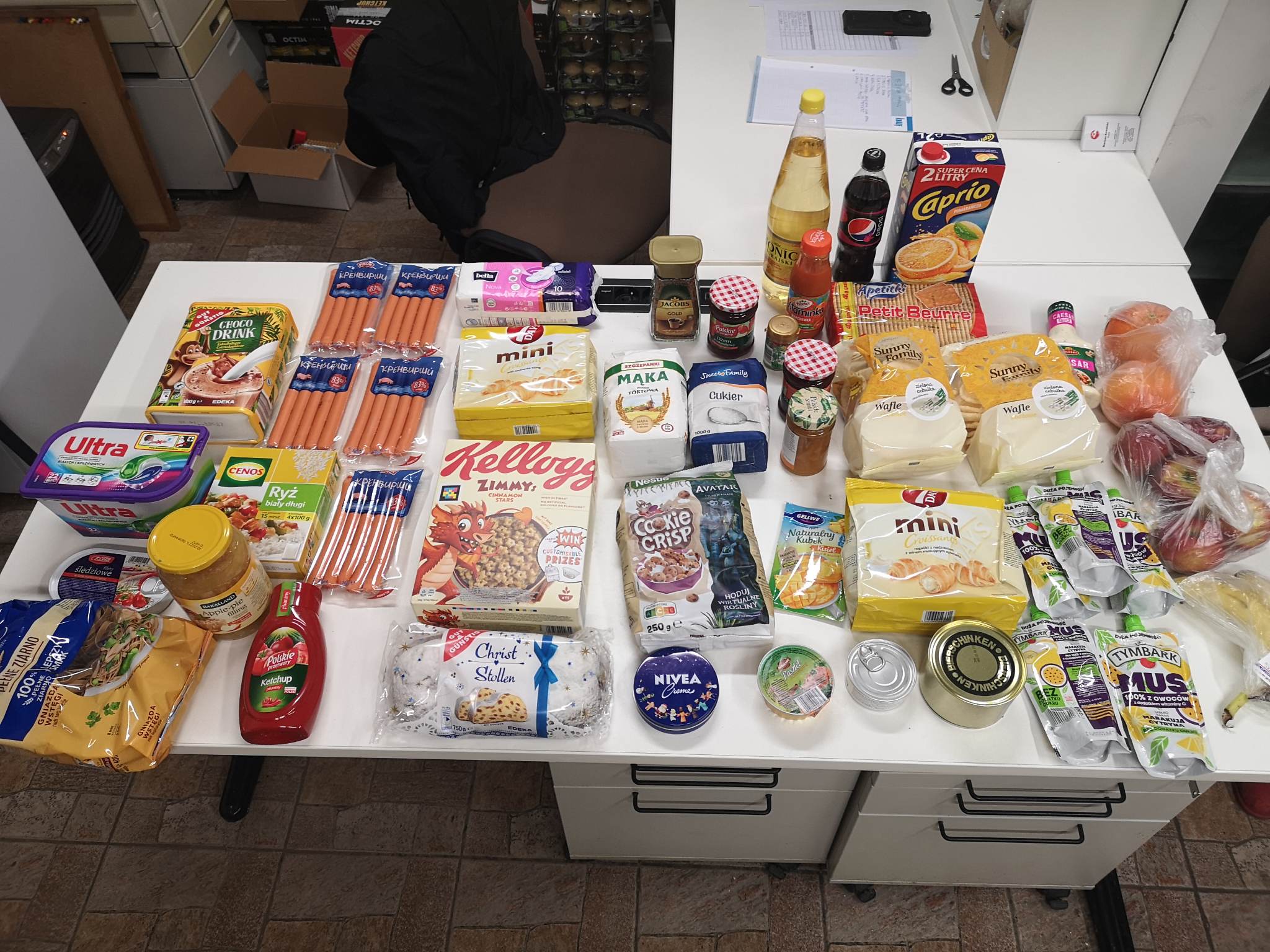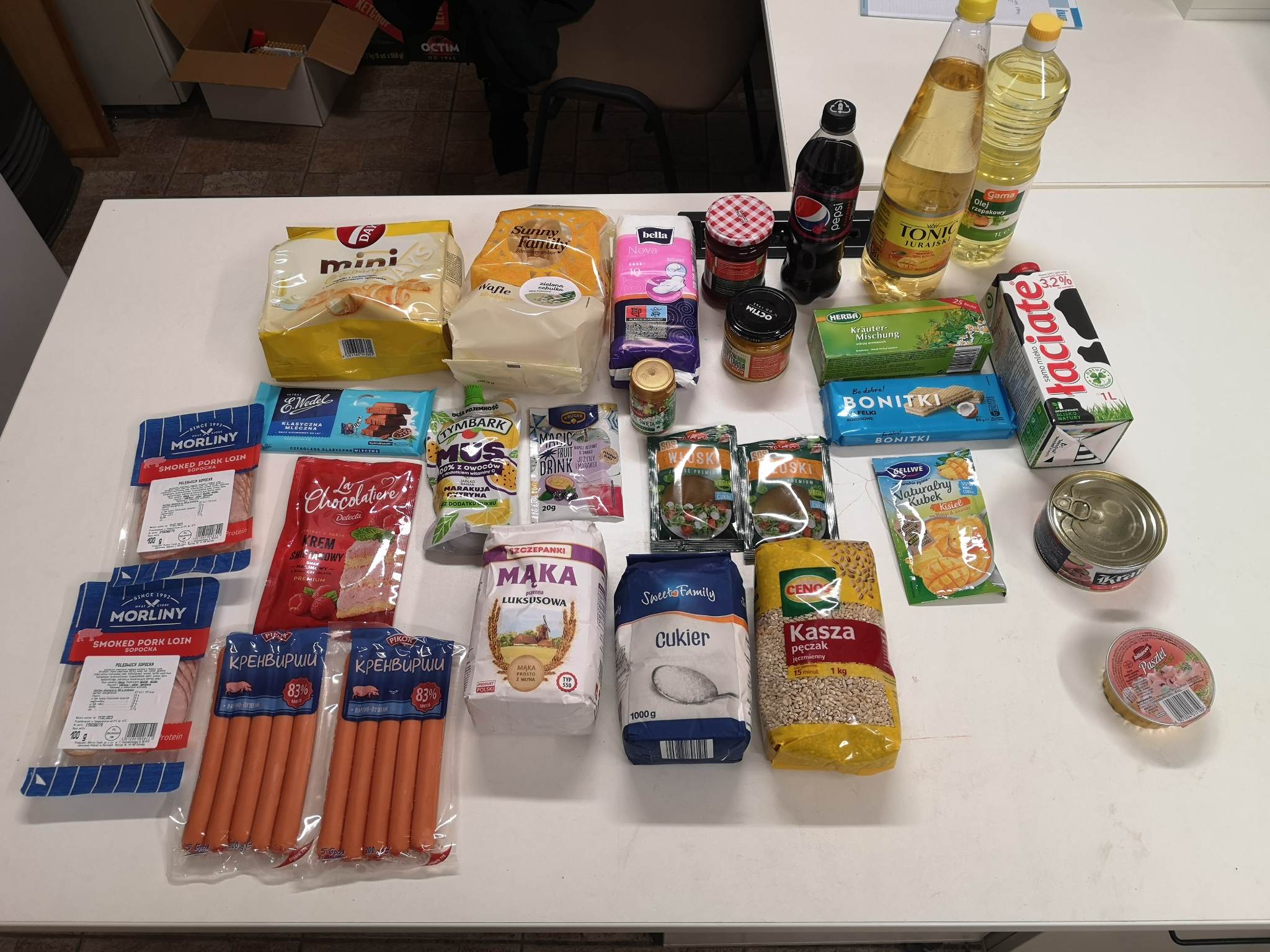 Polak Polakowi Bratem❗W Punkcie Przyjęć Potrzebujących nasi Wolontariusze kol. Kuba i kol. Mariusz przyjęli naszych Podopiecznych p. Irenę utrzymującej się z emerytury 980 zł, czynsz 140 zł, prąd 380 zł, sieciówka 50 zł, abonament tel 30 zł, leki 50 zł, ma 2 dzieci i nie pomagają, wdowa od 10 lat, staż pracy to 33 lat jako salowa, p. Ewę – mieszka w mieszkaniu córki, która je opłaca. Druga córka pomaga materialnie. Utrzymuje się z zasiłku w wysokości 380 zł miesięcznie i korzysta z darmowych obiadów z opieki społecznej. Potrzebuje nowego telefonu, p. Annę utrzymującą się z zasiłku stałego 520 zł, i pielęgnacyjnego 215 zł, wynajmuję pokój za 500 zł, ma 2 synów ale są w rodzinie zastępczej i są niepełnoletni 6 i 14 lat, posiada umiarkowany stopień niepełnosprawności, jest osobą bezrobotną, p. Tadeusza utrzymującego się z emerytury 1500 zł, czynsz 650 zł, prąd 200 zł, gaz 200 zł, abonament tel 25 zł, ubezpieczenie 100 zł, ma córkę, która nie pomaga, staż pracy to 40 lat jako pracownik fizyczny p. Arkadiusza bezdomnego od 20 lat, utrzymującego się z zasiłku stałego 719 zł, mieszka w przyczepie kampingowej, ma 2 dzieci nie pomagają, staż pracy to 18 lat jako kierownik tartaku, p. Annę – wynajmuje pokój za 500 zł. Utrzymuje się z zasiłku stałego 650 zł oraz zasiłku pielęgnacyjnego 215 zł, bezrobotna, p. Stanisława utrzymującego się z emerytury 1100 zł, czynsz 500 zł, prąd 200 zł, gaz 200 zł, ma syna który nie pomaga, staż pracy jako budowlaniec to 20 lat, p. Emilię – wynajmuje mieszkanie kosztujące 1300 zł miesięcznie. Ponosi wydatki 200 zł za przedszkole i 100 zł na leki. Zarabia na poczcie 1850 zł. Ma chorego męża który z dnia na dzień z tego tytułu stracił pracę, ma 3 dzieci. Otrzymali żywność oraz inne akcesoria. Dziękujemy za Wparcie anonimowym Donatorom oraz BO-DO, Varnija Michelin Careers OCTIM – od 1965